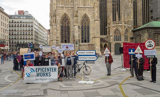 Die Grundrechts-NGO epicenter.works hat Aktionen in drei österreichischen Städten organisiert. Bei diesen wurde dargestellt, wie Zensurmaschinen in Form von Uploadfiltern und ein Leistungsschutzrecht das Internet in eine Sackgasse führen.