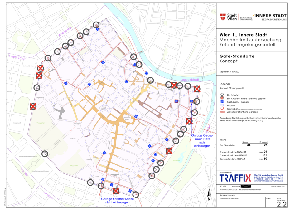 Offizielle Dokumente der Stadt Wien zeigen, wie flächendeckend Videoüberwacht werden soll. An jeder der 26 Zufahrten sollen 2 bis 7 Kameras aufgestellt werden. Diese müssen natürlich sichtbar am Boden und mit Hinweistafeln gekennzeichnet werden. Im Gegensatz zu jenem seiner Amtsvorgängerin beinhaltet der Entwurf von Minister Hanke keinen Schutz von Demonstrationen. Es fehlt eine Bestimmung, dass Kameras bei einer Demonstration mittels Fernbedienung zugeklappt oder verhängt werden müssen.