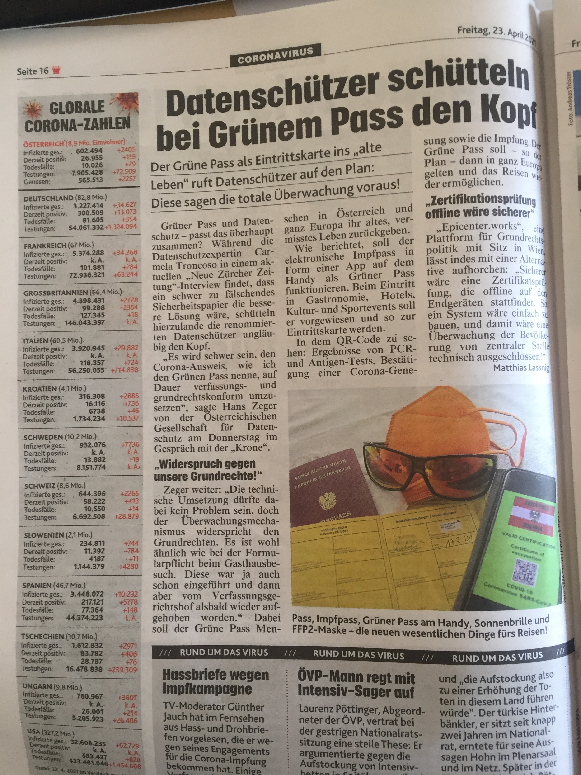 Die Datenschutzgefahren des "Grünen Pass"
