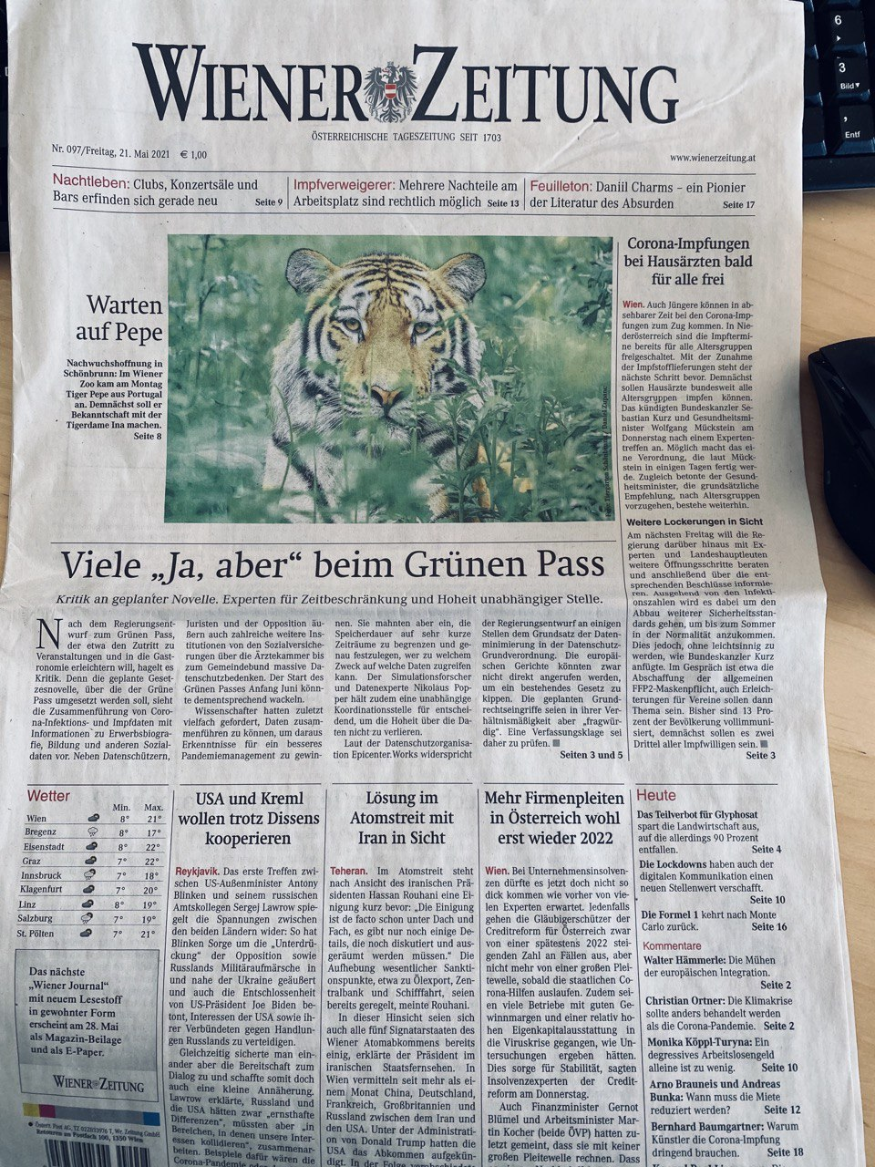 | Viele "Ja aber" beim Grünen Pass | 21.05.2021 | Wiener Zeitung | Ja | ||