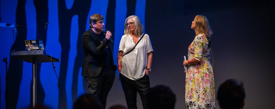 Theater play: “Montags-Kinder” – a humorous but tough look into our digital future? Daniel Lohninger with young actors in a discussion with the audience.